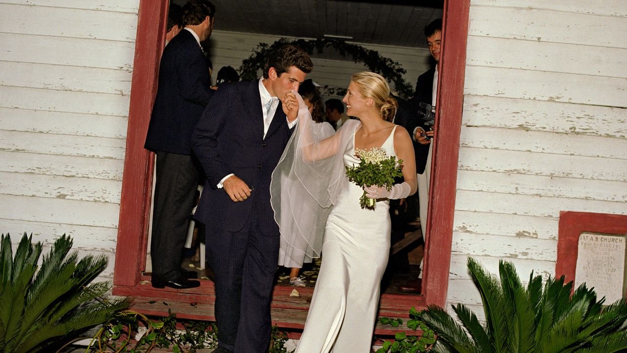 A simple, slinky bias-cut slip dress, designed by her close friend Narciso Rodriguez, was Carolyn Bessette-Kennedy’s wedding dress of choice for her secretive 1996 nuptials to John F. Kennedy Jr. Its impact endures.