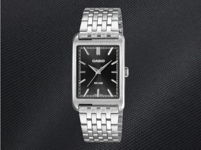 The Casio MTP-B215 series watches have been listed on one of the brand’s official websites. The range includes six models, four with metal bracelets and two with leather straps. Each of the rectangular dial watches has a stainless steel case, and the model is offered with a range of dial colors.