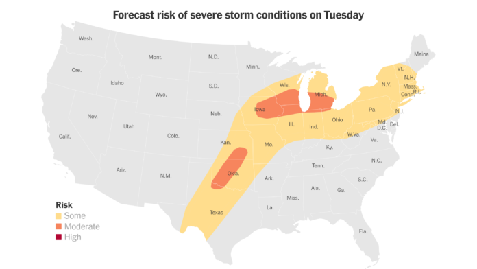 Home News Central U.S. Braces for Yet Another Wave of Severe Storms News Central U.S. Braces for Yet Another Wave of Severe Storms By styloux - April 14, 2026 2 0 FacebookTwitterPinterestWhatsApp More than 125 million people face some risk of severe weather on Tuesday, forecasters warned, amid a multiday outbreak of storms. RELATED ARTICLESMORE FROM AUTHOR News Jewelry Tops the Best Mother’s Day Gift Ideas in 2026 News Baume et Mercier’s New Riviera Watches are Ready to Party Like it’s 1973 News Kim Jong-un watches artillery drills on major North Korean holiday News Jury watches disturbing van footage in Tanner Horner trial News The Best of Watches and Wonders 2026: Patek, Rolex, Cartier and IWC News Jim Beam’s Small-Batch Booker’s Bourbon Is A Must-Buy in 2026 LEAVE A REPLY Cancel reply Please enter your comment! Please enter your name here You have entered an incorrect email address! Please enter your email address here Save my name, email, and website in this browser for the next time I comment. - Advertisement -APLICATIONS Prototypes Missed Out on Investing in Palantir? 1 No-Brainer Artificial Intelligence Stock... styloux - January 3, 2026 0 Key PointsAlphabet is one of the best ways to capitalize on the AI revolution, considering its diversified approach to the technology. King Brothers Clothiers: Minnesota’s Only Master Bespoke Clothier March 5, 2026 Tornado warning issued for parts of North Carolina March 16, 2026 The Most Extravagant and Expensive Oscars Jewelry of All Time March 14, 2026 HOT NEWS Spotted in Tokyo: Every Naturally Skilled Dresser’s Go-To Cure for Winter... News Old Navy’s First-Ever Designer Collab Taps Anna Sui on a Collection... Burglar breaks into jewelry store via ceiling | FOX 11 Los... News Introducing – The Capri, The Shaped, Dress Watch Collection of De Rijke...