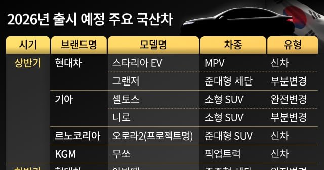 Home Cars Korean automakers roll out 16 new models as EVs and SUVs dominate... Cars Korean automakers roll out 16 new models as EVs and SUVs dominate 2026 By styloux - December 31, 2025 14 0 FacebookTwitterPinterestWhatsApp Korean automakers roll out 16 new models as EVs and SUVs dominate 2026 Manufacturers plan 16 domestic launches with EVs, hybrids and SUVs leading the lineup RELATED ARTICLESMORE FROM AUTHOR Cars Ford’s Stock Outlook: A Decade of Underperformance and Persistent Challenges Cars EV demand climbs, but overall car sales dips in PH in Q1 2026 Cars Car Dealer Power 2026 returns – vote NOW to name the best suppliers and carmakers Cars Car Screens Went Too Far—Now Brands Are Bringing Buttons Back Cars An Unlikely Manufacturer Is Saving The Cheap Turbo Manual Hatchback Cars China’s Changan mulls Spanish factory to aid Europe expansion LEAVE A REPLY Cancel reply Please enter your comment! Please enter your name here You have entered an incorrect email address! Please enter your email address here Save my name, email, and website in this browser for the next time I comment. - Advertisement -APLICATIONS News Marc Jacobs Fall/Winter 2026 Collection styloux - February 10, 2026 0 The designer unofficially kicked off New York Fashion Week with a line that recalled his own archive, reimagined for a contemporary wearer. Jewelry store employees fights armed robber | FOX 11 Los Angeles February 16, 2026 Destress at RPM by D.Bespoke, a lively bar at night and... February 23, 2026 The 11 Best Cashmere Sweaters on Sale Right Now January 24, 2026 HOT NEWS Samsung Jet 95S vacuum goes live with Bespoke power, minus the... News Buying Guide – Small But Mighty – Six Versatile Watches of 36mm... A new, ‘landmark’ store is opening soon at Fenton. Here’s what... 14 spring-coded handbags you can get for under $100 at Kate...