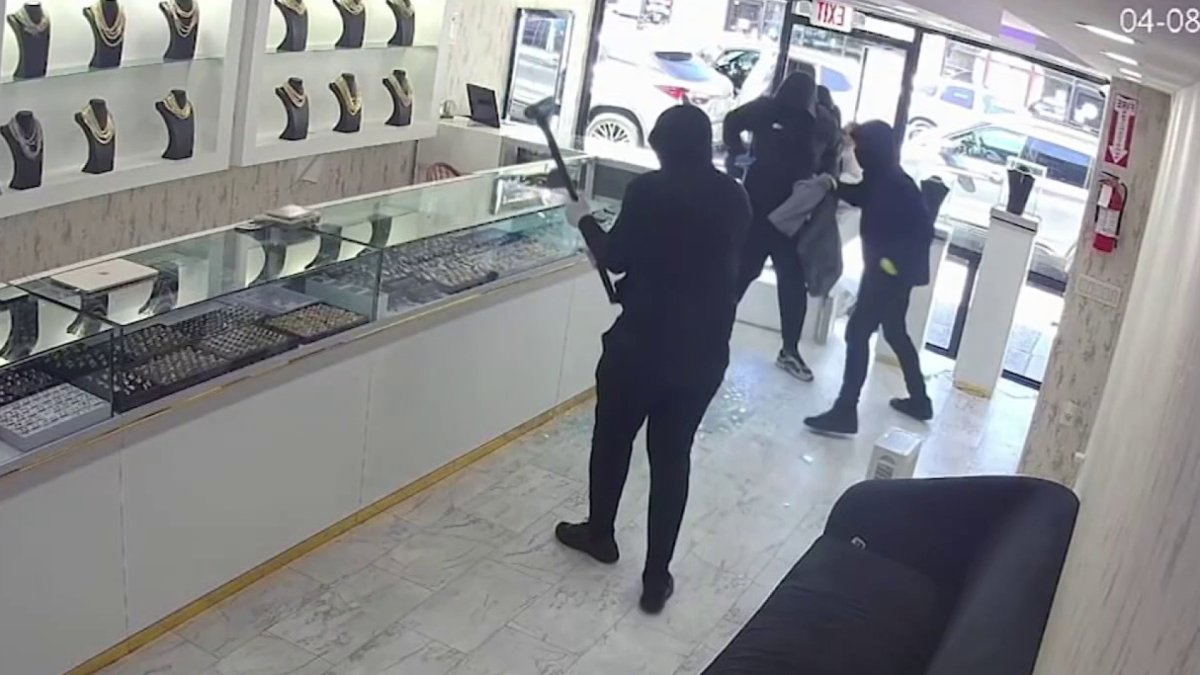 Surveillance video showed a dramatic scene in New Jersey, as a group of robbers smashed their way into a family-owned jewelry store. The smash-and-grab theft took just minutes, and the robbers got away with about $1 million worth of jewels. NBC New York’s Adam Harding reports.
