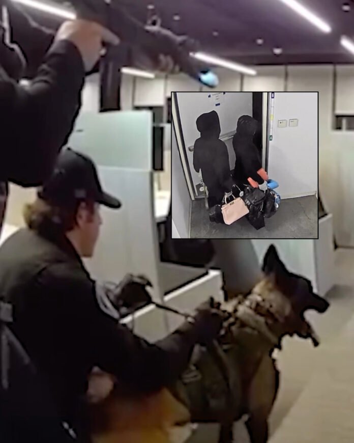 An estimated $100,000 in luxury merchandise was recovered from two alleged thieves caught in the act of burglarizing a high-end Orange County handbag store, authorities announced Monday.&…