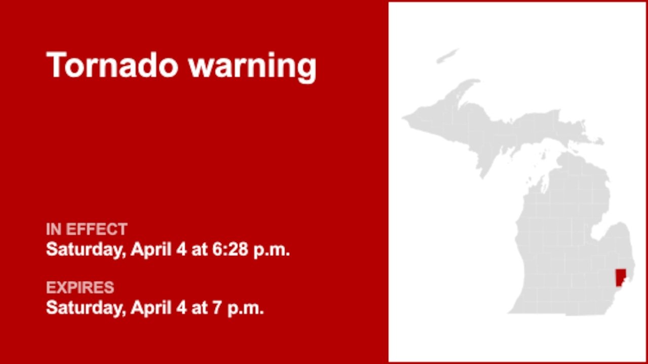 The National Weather Service issued an updated tornado warning at 6:28 p.m. EDT on Saturday in effect until 7 p.m. EDT for Macomb County.