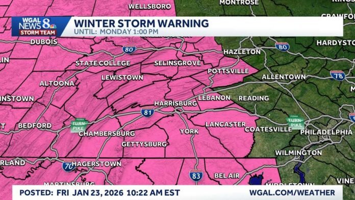 Home News WINTER STORM WARNING | Entire Susquehanna Valley included News WINTER STORM WARNING | Entire Susquehanna Valley included By styloux - January 23, 2026 10 0 FacebookTwitterPinterestWhatsApp The National Weather Service has issued a winter storm warning for South-Central Pennsylvania as a winter storm is poised to bring more than a foot of snow this weekend. RELATED ARTICLESMORE FROM AUTHOR News Women’s watches in 2026: Chanel, Bulgari and Cartier break the mould with fancy shapes and gems News Watches and Wonders 2026: Rolex, Patek And Cartier Meet Luxury’s Gulf Shock News 2026 RBC Heritage Sunday TV coverage: How to watch Round 4 News Spring chill brings Freeze Warning to NE Ohio News Casio: New simple metal watches on the way to Europe News NDLEA Busts Drug Rings, Intercepts Cocaine in Food Flasks, Arrests Fashion Designer LEAVE A REPLY Cancel reply Please enter your comment! Please enter your name here You have entered an incorrect email address! Please enter your email address here Save my name, email, and website in this browser for the next time I comment. - Advertisement -APLICATIONS Locally owned accessories store will close on Kansas City’s Plaza after... styloux - December 29, 2025 0 The jewelry brand will keep operating its other area store. THE MILITARY FAMILY: R. Riveter handbags bring stability to families in... January 16, 2026 Behind the scenes of drone food delivery in Finland November 30, 2025 Flipper Zero, Everyone’s Favorite Legally Dubious Hacker Tool, Gets an AI... March 23, 2026 HOT NEWS Egypt Encompassed Expands to Europe: Offering Bespoke Luxury Travel Experiences with... Prototypes Trump Says He Is Not Worried About an Artificial Intelligence Bubble... DISTURBING NEW TREND: ‘Snatch and grab’ jewelry thefts on the rise News Longines Debuts on Amazon Luxury